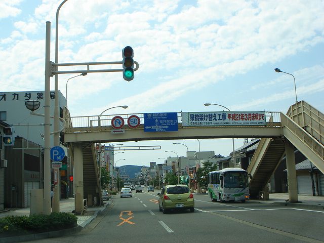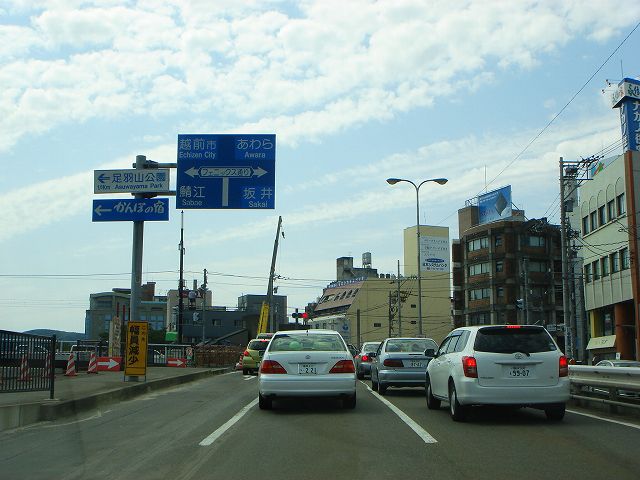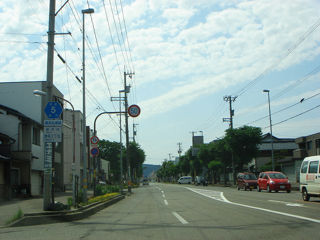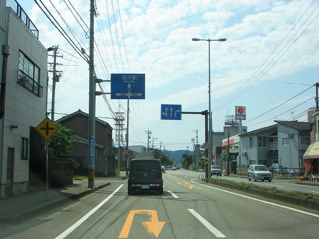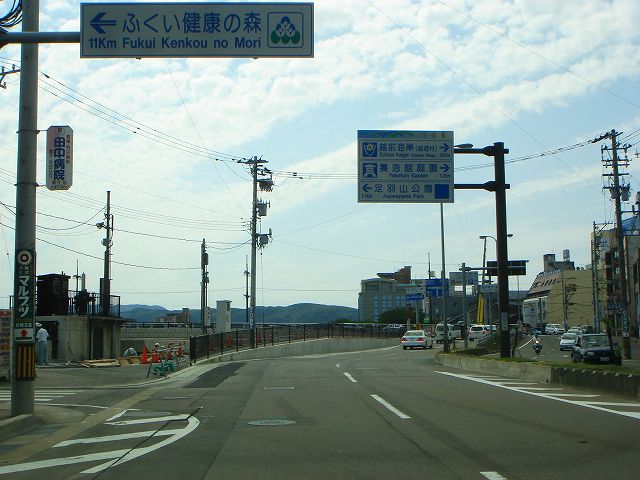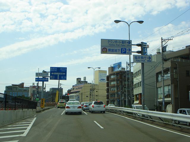 九頭竜湖・大野方面から続いてきた国道158号は国道8号福井バイパスで終点となり、ここから先は県道5号福井加賀線となって福井市街方向へ向かっていきます。
