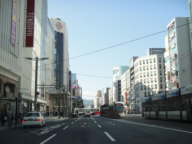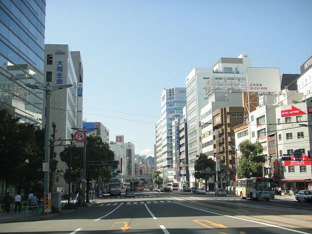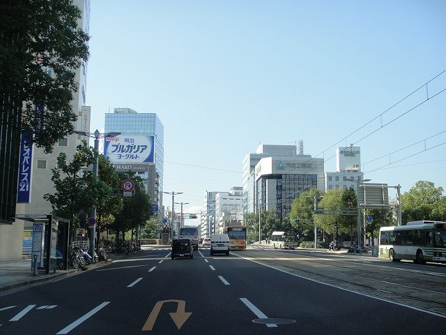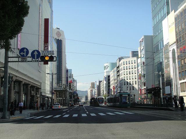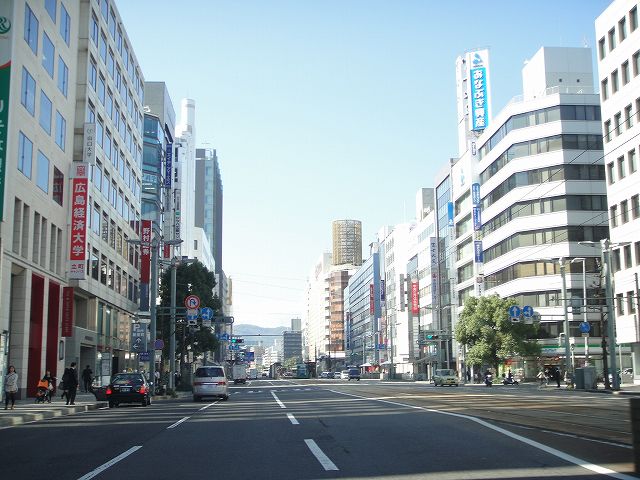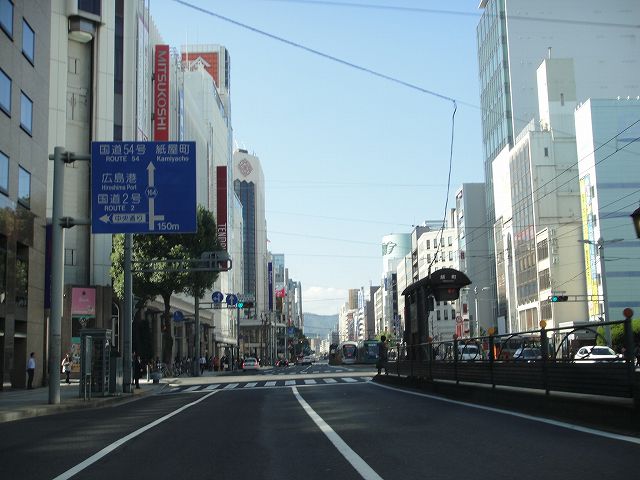 紙屋町・八丁堀という繁華街を通り抜ける広島市ののメインストリートであり、広島電鉄市内線がひっきりなしに走っています