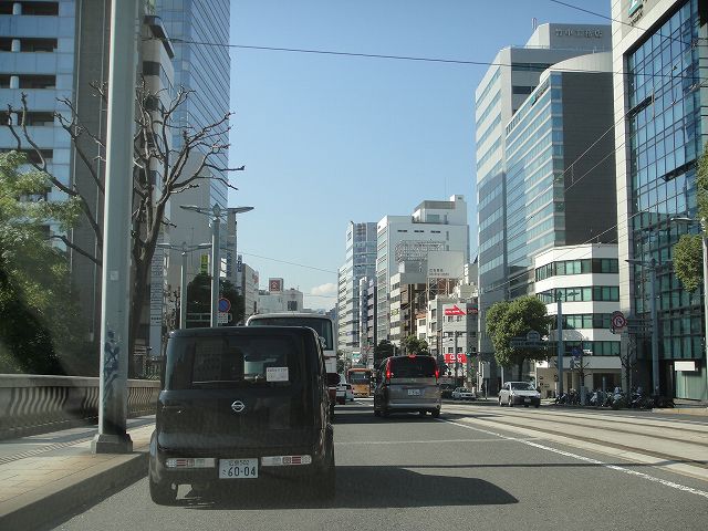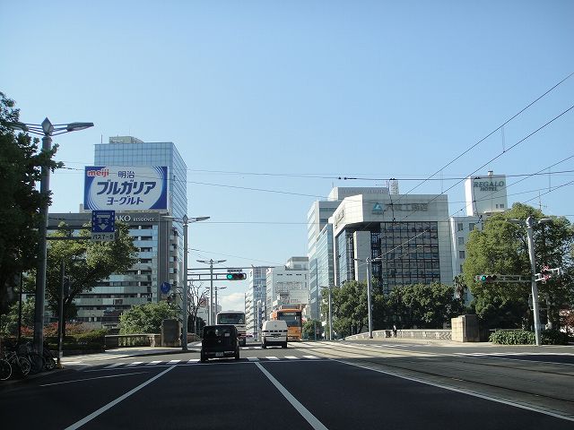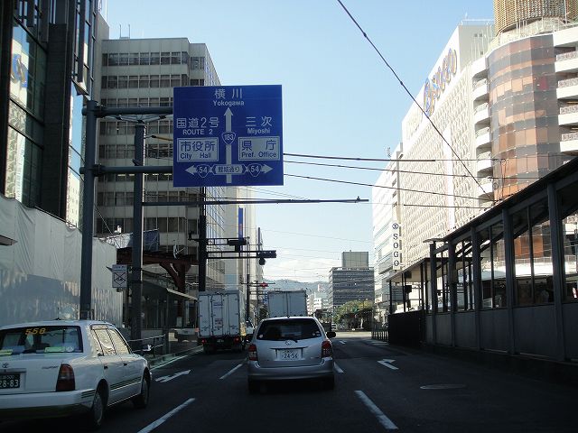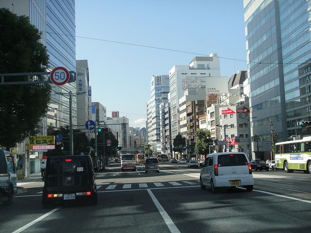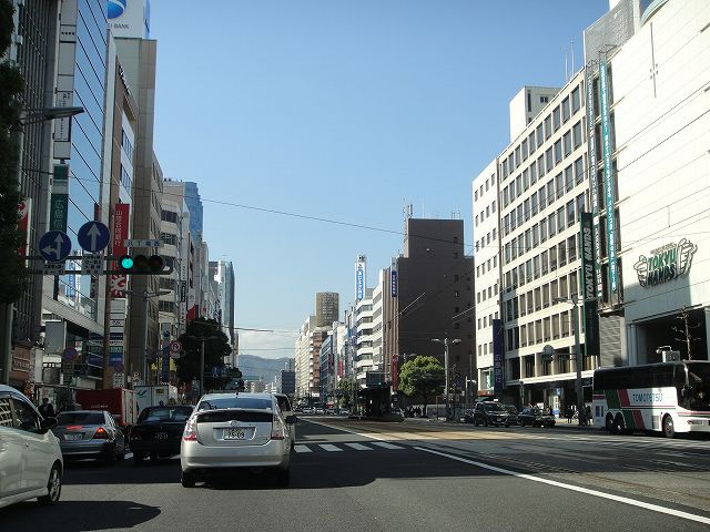 広島県道164号の稲荷町交差点から紙屋町交差点へ向けて西へ走行していきます。