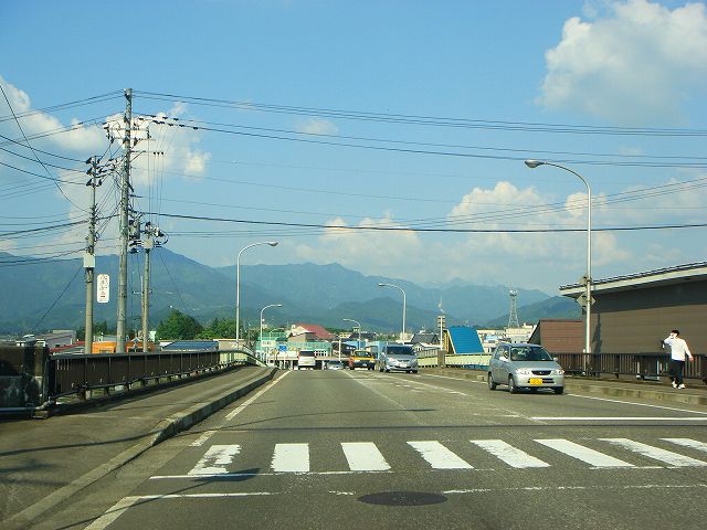 橋の向こう側が小出市街
