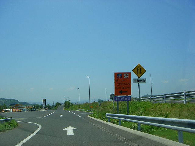 温泉施設チェリークアパークへは左方向へ