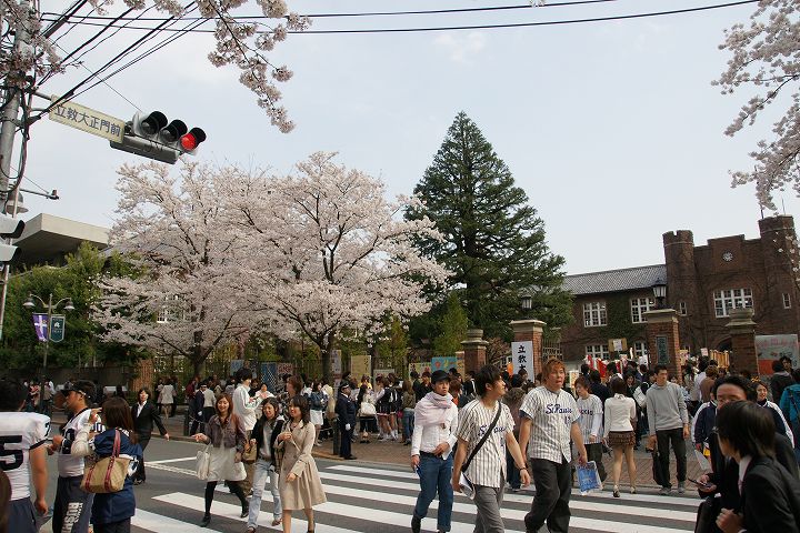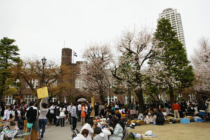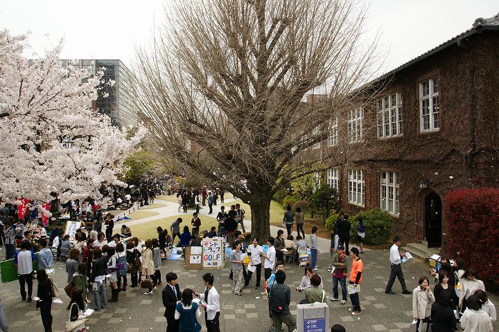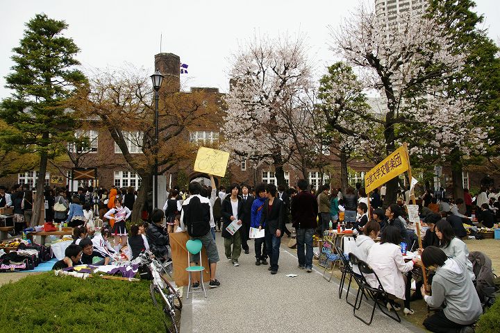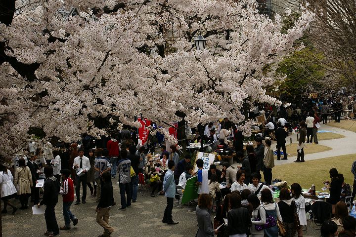 サークルの新入生勧誘合戦で1年で最も賑わう(?)時季のキャンパス内の様子です。