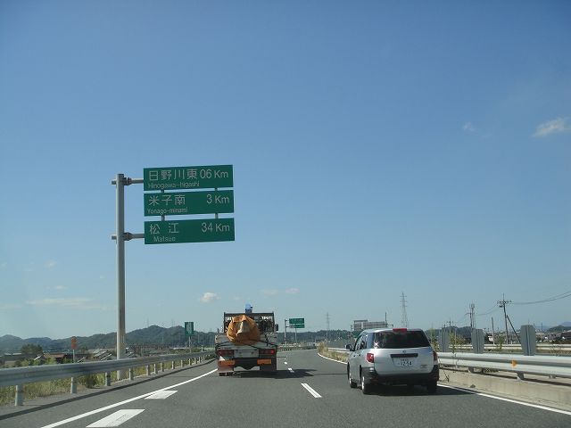 日野川東IC0.6q、米子南IC3q、松江34q