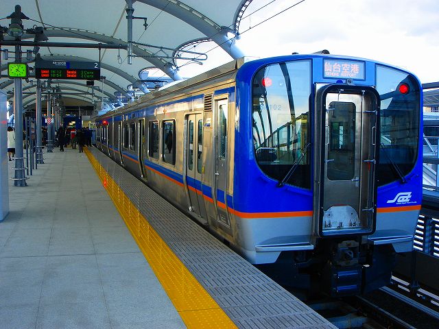 仙台空港アクセス線に乗車、仙台空港駅に到着