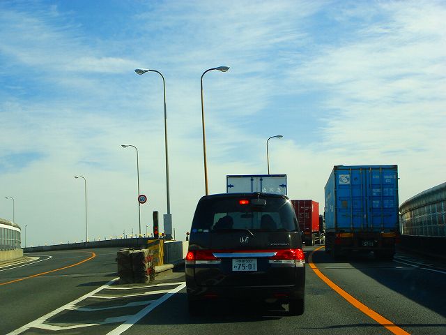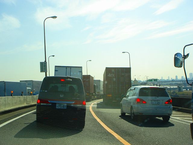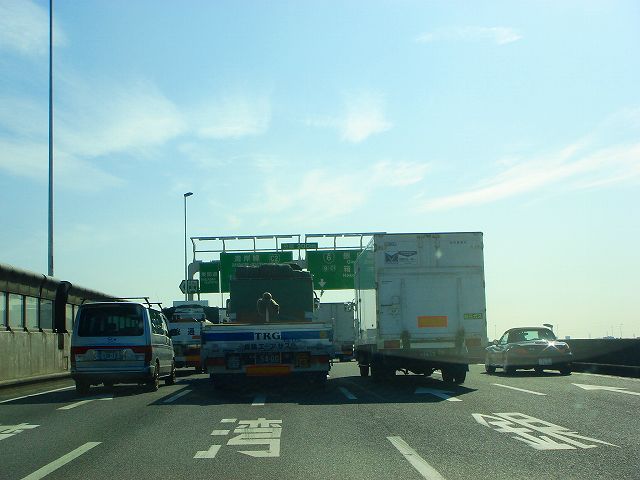 銀座方面は右側2車線、湾岸線方面は左側2車線へ車線変更します