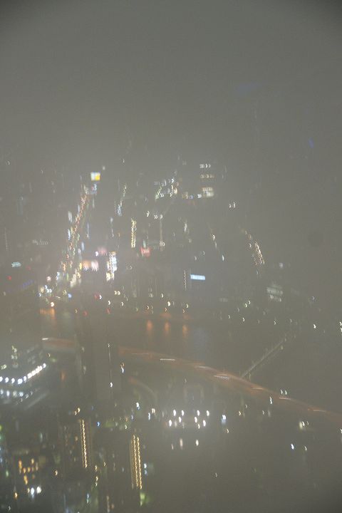 あいにくの雲で白みがかかった夜景に・・・